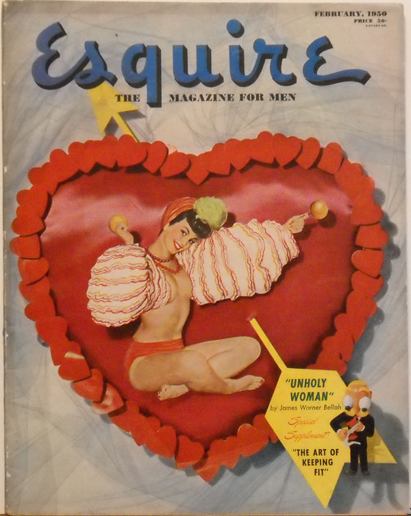 | 10/47 | FC Painting by E. Simms Campbell. Nancy Saunders has full pg pic. Articles about Will Rogers, Dizzy Gillespie, George Halas of the Chicago Bears, Nikola Tesla Switzerland and the University of Minnesota. Full pg ad for new Esquire 'Jungle Girl' Playing Cards. The Esquire Gallery - Full pg Illustrations - 'Girl' by Al Moore, 'Weather Forecast' by Fritz Willis, 'Last Rose' by Ben-Hur Baz, 'Student' by Frtiz Willis & Joe de Mers plus 'Mystery of Mayerling' by J. Frederick Smith - 3 illos on 3 pgs and a 2 pg illo 'Cowboy With the Trick Rope' (Will Rogers) by Joe de Mers Book is solid VG/VG+, 1pg (145/146) missing, Artwork in great shape @ 15.00 (View It!) |