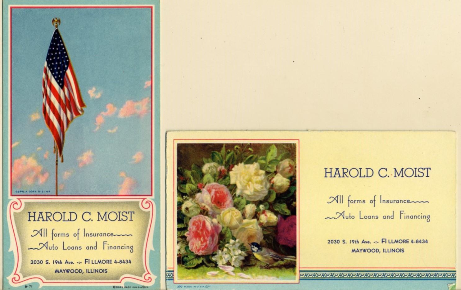 | 1953 | OUTER ENVELOPE ONLY - No Calendar. By Al Moore. Envelope has been heavily handled, edges are rough with numerous small tears and creases on edges but sides and bottom have not been split. $5.00 (View It!) |