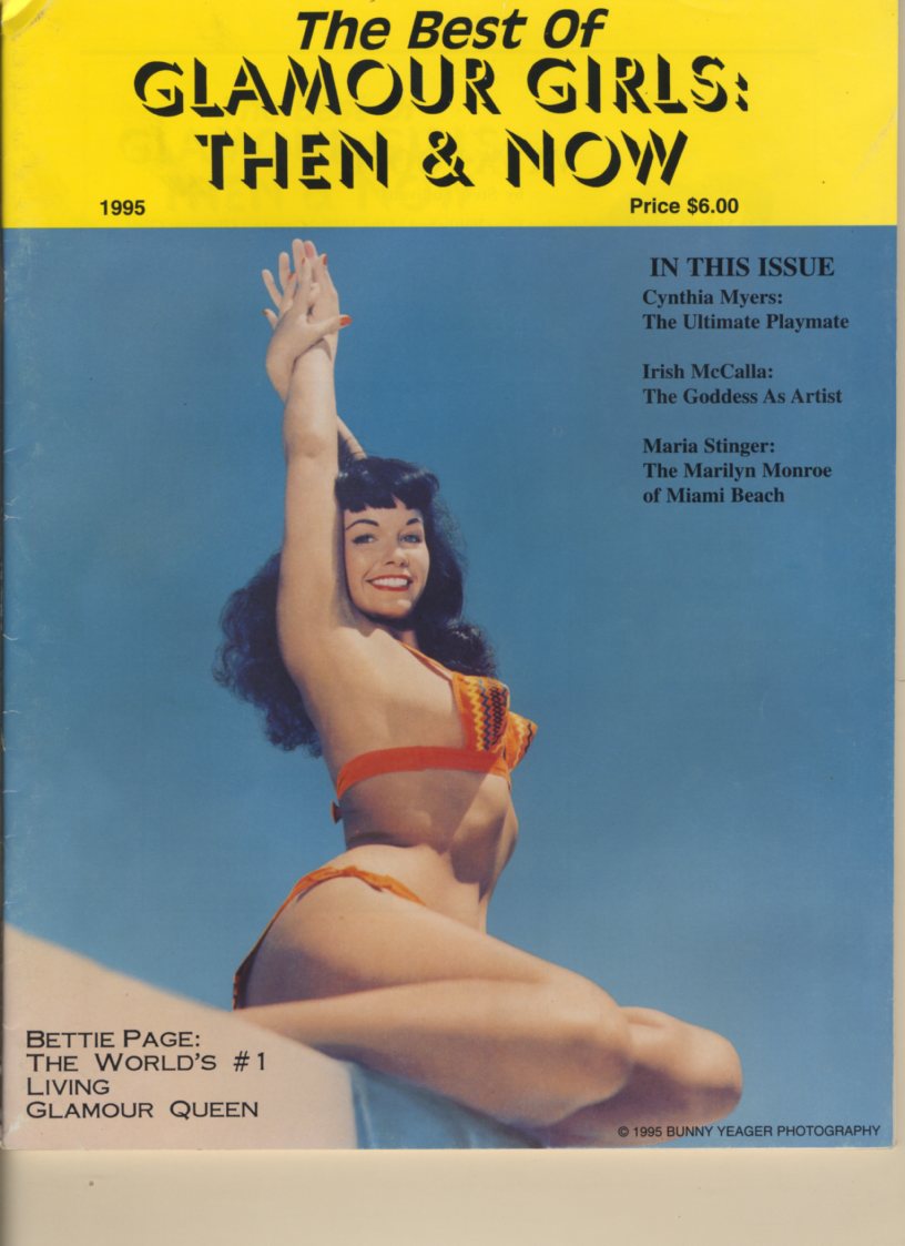 | Best Of #1 | 1995 - Bettie Page color FC + 2 pgs. Reprints the best articles from the first 5 issues - Irish McCalla - from #1 has an 11 pg article w/ 5 pages of pix inc 4 full pg photos plus an extensive list of mag apps and film credits, Maria Stinger - has 8 pgs inc 3 full pg pics, Angelyne - has 6 pgs inc 2 full pg pics, Cynthia Myers - (Playboy Playmate 12/68) has a big 16 pg feature article w/ 7 full page pix and Bunny Yeager has 2 pgs. 60 pgs. New, but upper left corner slightly soft. 25.00 (View It!) |