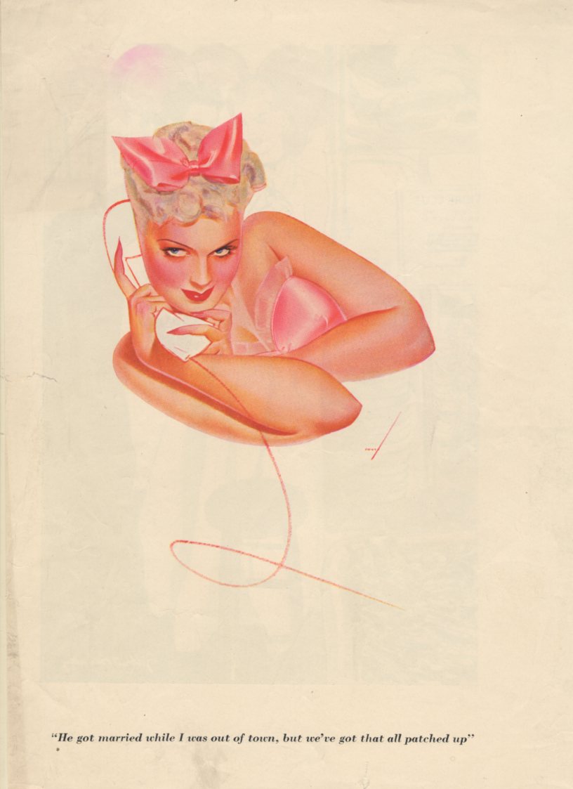 | Unknown | Petty illo - blond girl in black negligee talking on phone with leg in air - 7.50. Trimmed to 9" x 12" (View It!) |